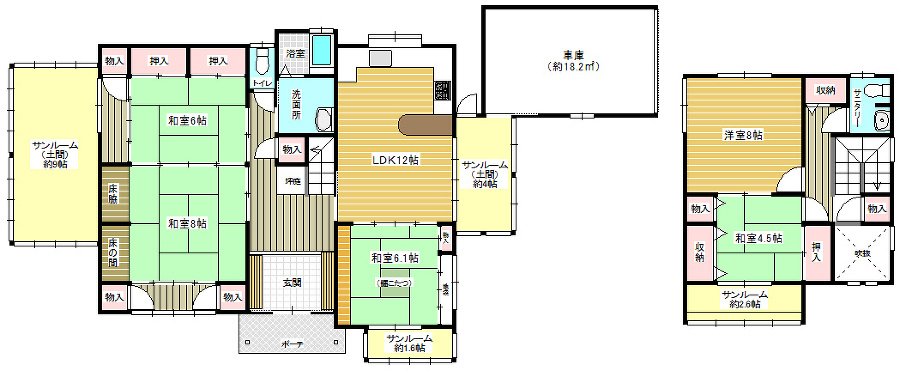 | 間取り | 5LDK+サンルーム | 建物構造 | 木造2階建て |