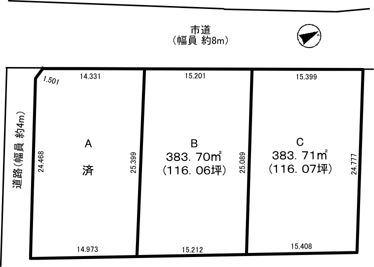 | 物件名 | 二間塚 売地116坪 全3区画 | ||